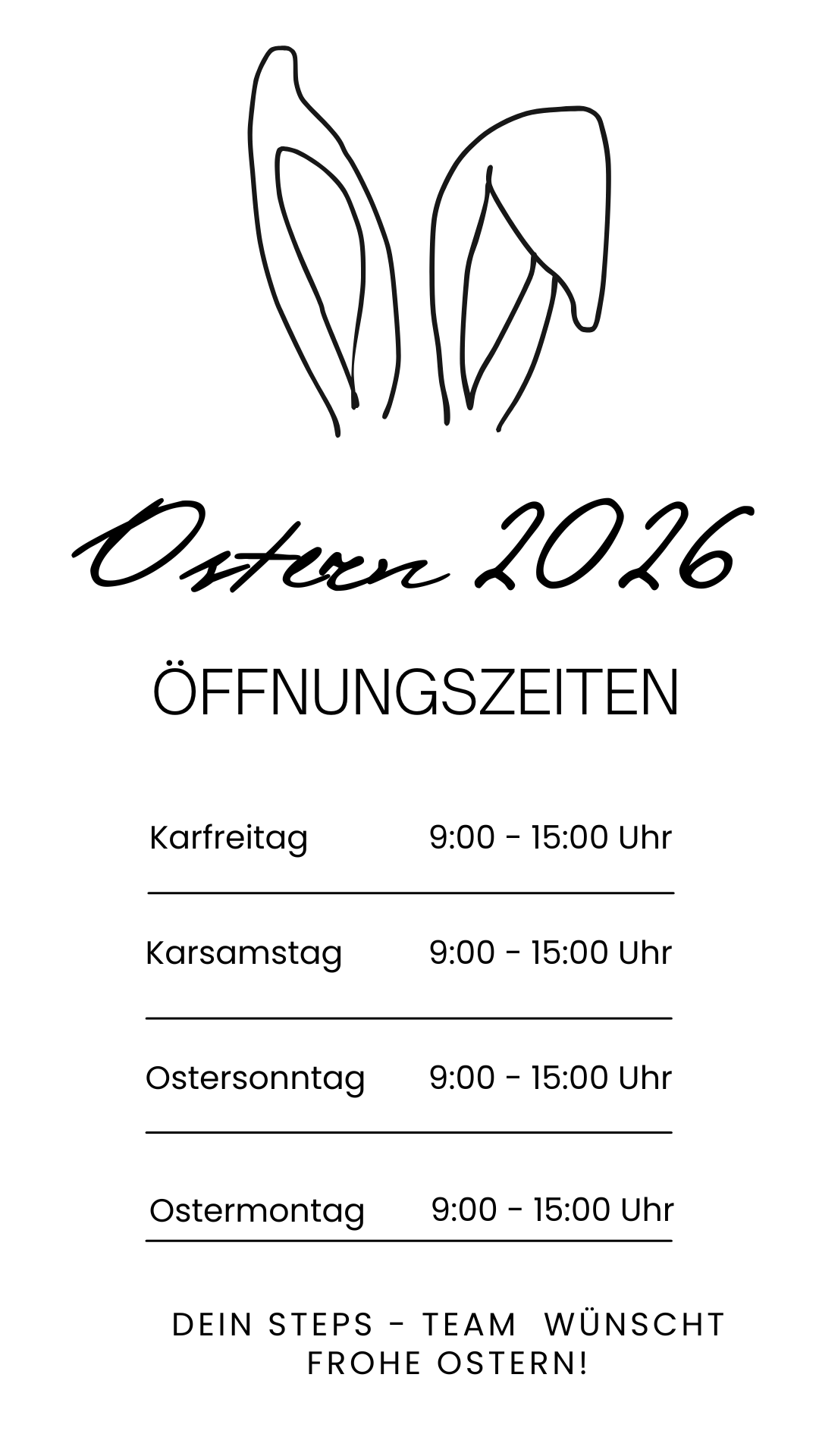 Feiertage: 9:00 – 15:00 Uhr